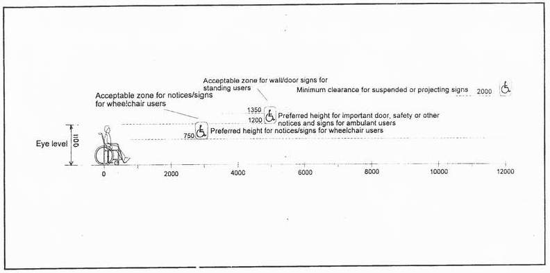 Signages should be in contrasting colours in distinct relief to allow visually impaired persons to obtain the information by touch. | |