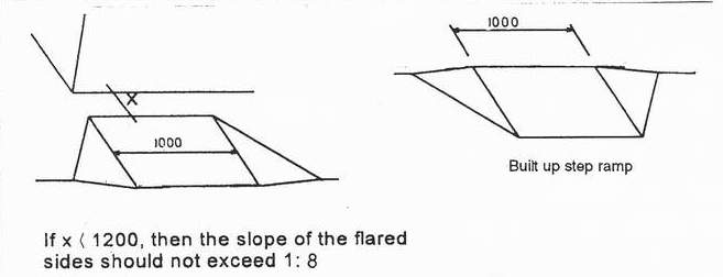 Slopes of step ramps should be gentle (e.g: less than 1:8). |