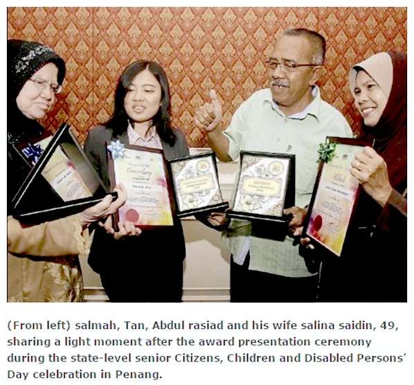 The Senior Citizen Figure Award went to Salmah Md Ibrahim, 72.