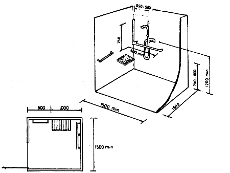 (8)挂毛巾和放肥皂等各种物件的设施,必须在1200-1300毫米的高度之间,以方便坐着淋浴的人士。