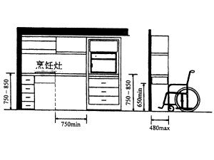 (2)工作台、洗菜池和灶台应在一个高度上,且此高度对使用轮椅的人来说是合适的;