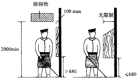 (1)对突出物如方向标示牌、树枝、电线、小孩玩的绳子、公共电话亭、椅子以及装饰用的各种物品,在安装时应考虑到盲人的拐杖所能触及的范围;