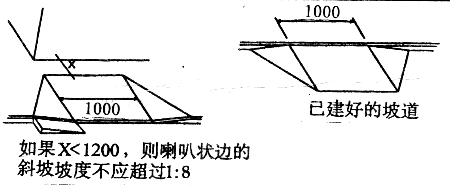 (1)当一条道路需跨过路缘石时应做成斜道;